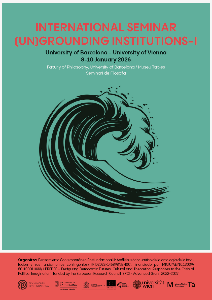 Los proyectos de investigación Pensamiento Contemporáneo Posfundacional: Análisis teórico-crítico de las ontologías contemporáneas de la negatividad y la cuestión de la violencia del fundamento (PID2020-117069GB-I00) y Pensamiento Contemporáneo Posfundacional-II: Análisis teórico-crítico de la ontología de la institución y sus fundamentos contingentes (PID2023-146898NB-I00), financiados por MICIU/AEI /10.13039/501100011033, se desarrollan como parte de la investigación realizada en el Grupo de investigación SGR «Crisis of Practical Reason».